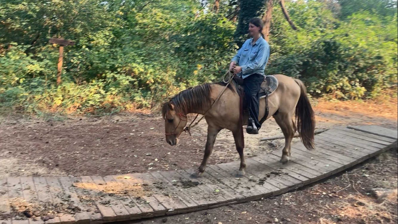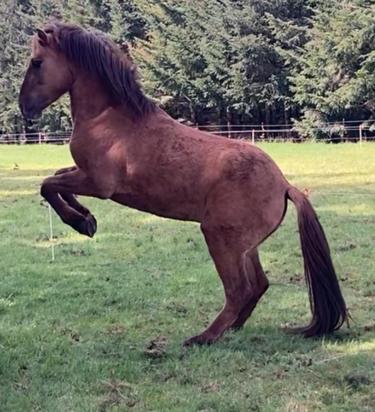 Born 2021, 14hh, dark red dun, strong and athletic.
